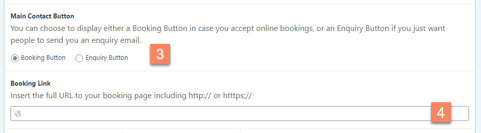 You’ll first need to select whether you have an online booking system or not. Either select Booking Button or Enquiry Button (Figure 16.3). The booking button brings people straight to the booking page of your website. The enquiry button opens the email program of the website visitor so they can send you an email.